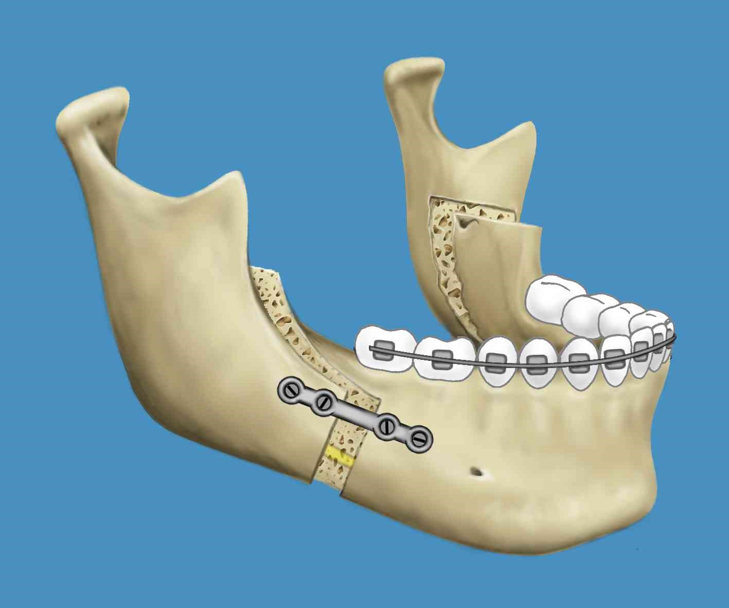 Εφαρμόζεται με κατάλληλες τροποποιήσεις σε πλήθος σκελετικών ανωμαλιών της κάτω γνάθου (προγναθισμός, οπισθογναθισμός ή ασυμμετρία κάτω γνάθου, θεραπεία υπνικής άπνοιας). Συνίσταται στο διαχωρισμό του οδοντοφόρου τμήματος της κάτω γνάθου από τους δύο κλάδους της, ώστε αυτό να μετακινηθεί στην επιθυμητή θέση ως προς τα τρία επίπεδα και εκτελείται εξολοκλήρου με ενδοστοματικές τομές. Μετά τις οστεοτομίες η κάτω γνάθος είναι πλέον χωρισμένη σε τρία τμήματα: 2 κεντρικά (κονδυλοφόρα) και 1 περιφερικό (οδοντοφόρο). Τα 2 κεντρικά τμήματα, στα οποία περιλαμβάνονται οι κόνδυλοι, παραμένουν στη θέση τους μέσα στην κροταφική γλήνη, ώστε να μη διαταραχθεί η κροταφογναθική διάρθρωση αμφοτερόπλευρα. Το περιφερικό οδοντοφόρο τμήμα κινητοποιείται πλήρως, ώστε να μετακινηθεί ελεύθερα στην προκαθορισμένη θέση. Ακολουθεί η επανσύνδεσή του με τα 2 κεντρικά και ακινητοποίηση με μικρές πλάκες και βίδες τιτανίου, που εξασφαλίζουν μια νέα σταθερή κάτω γνάθο και μειώνουν την ανάγκη διαγναθικής ακινητοποίησης (παραμονής του ασθενούς με το στόμα κλειστό).